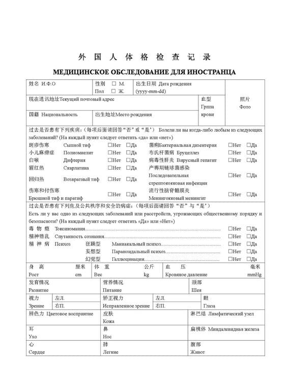 Образец медкомиссии для визы в Китай