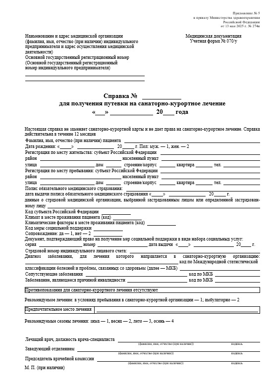 Образец справки 070/у для путевки