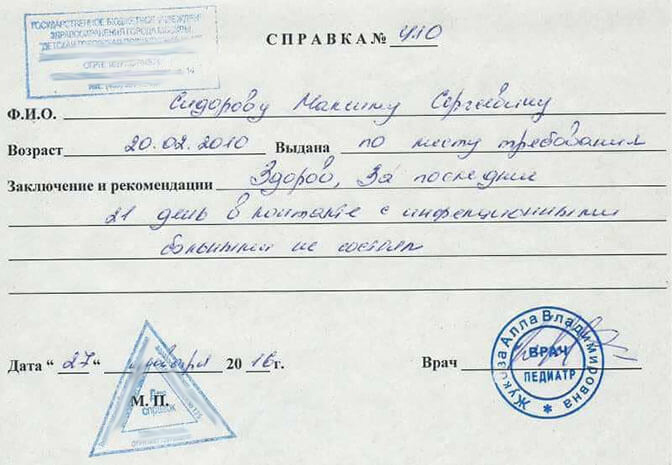 Справка от педиатра